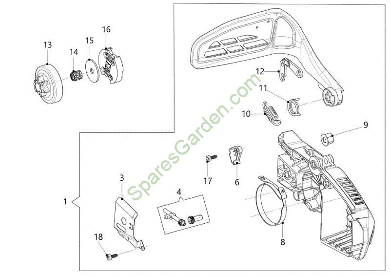 Spare Part Spring Chain cover - Clutch Chainsaws Brand Oleo-Mac Required Quantity: 1