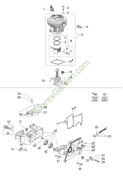 Spare Part Complete cylinder Engine and crankcase Chainsaws Brand Oleo-Mac Required Quantity: 1