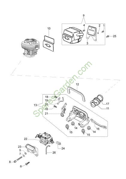 Spare Part Band Muffler and carburetor Chainsaws Brand Oleo-Mac Required Quantity: 1