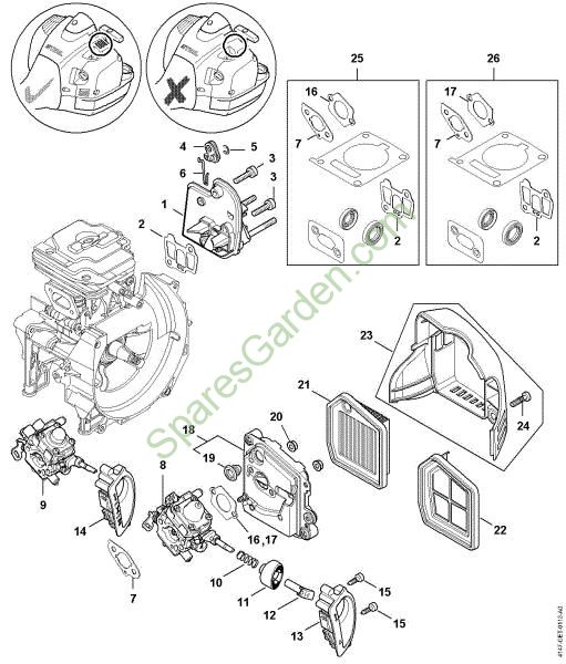 When ordering original spare parts for your product Clearing saws (FS) FS 410-K (4147) of Stihl, to allow our staff to send you the correct spare parts,enter the year of the machine and, if available, its serial number in the Miscellaneous Notes field on the final page of the cart.