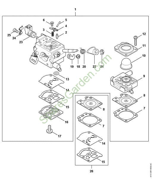 Original spare parts Set of carburetor parts Clearing saws (FS) FS 461 C-EM L Stihl Included nr. 7, 8, 14, 15