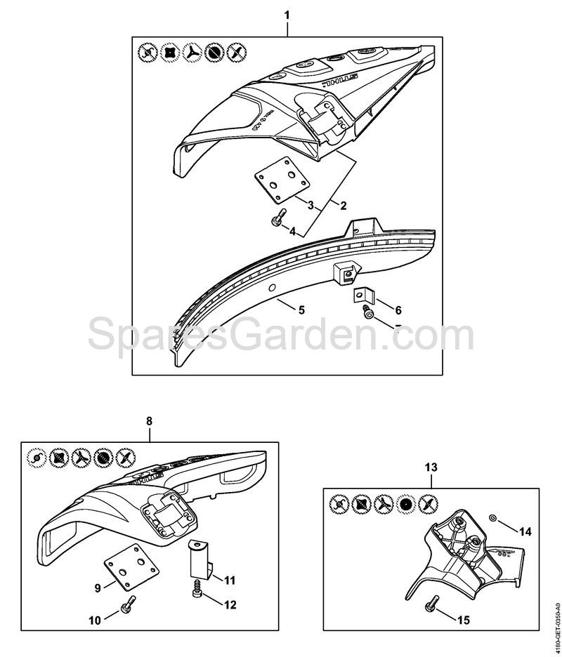 Original spare parts Deflector kit Cordless trimmers (FSA) FSA 130 R Stihl Included from nr. 9 to 12