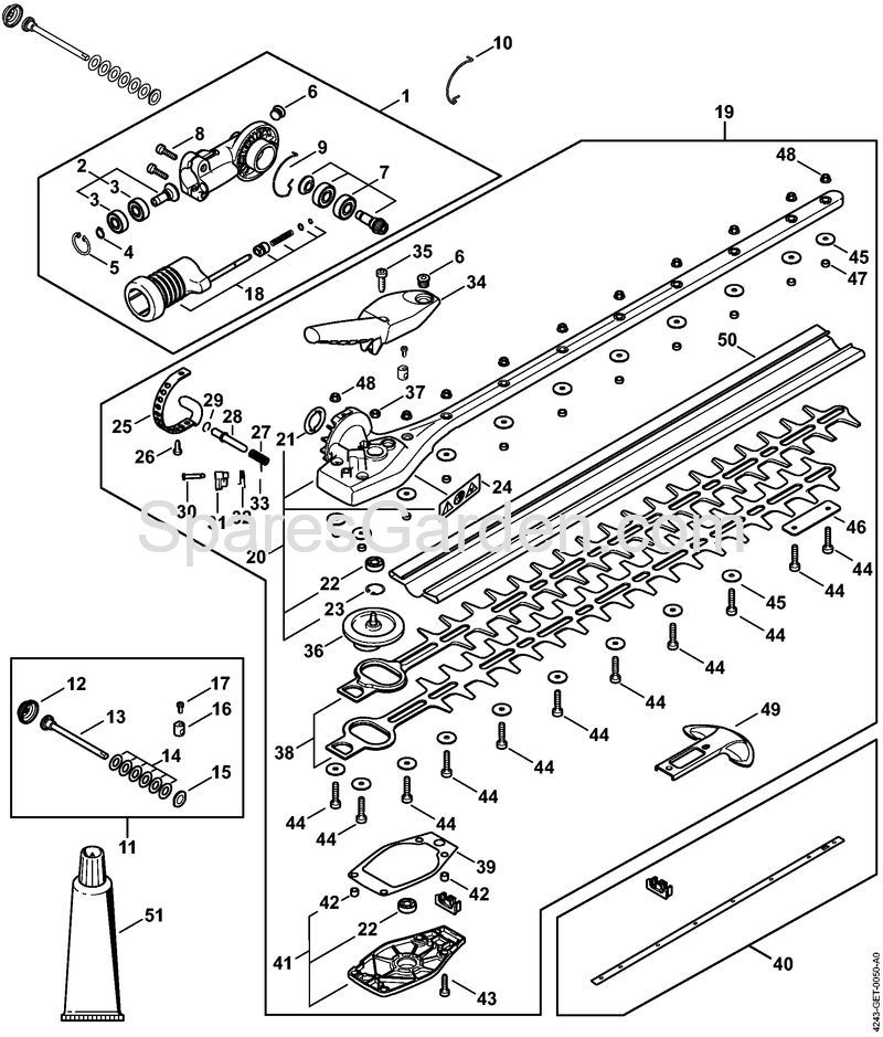 Original spare parts Gear housing (145°, 600 mm) Extended reach hedge trimmers (HL) HL 94 C-E Stihl Included from nr. 21 to 24