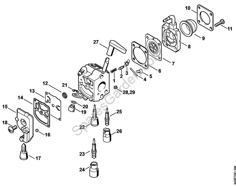 Carburetor C1Q-S225, -S218, -S196, -S197, -S105, -S111, -S115, -S116 Hedge trimmers (HS) HS 86 R Stihl