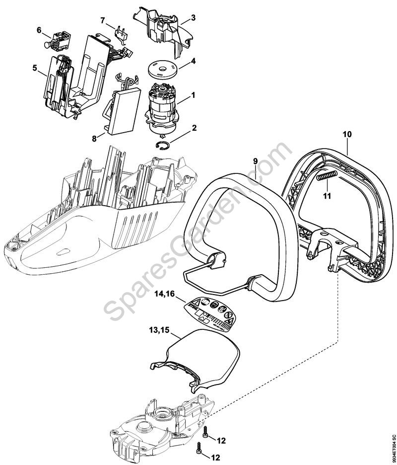Electric motor, Electronic module, Switch lever Cordless hedge trimmers (HSA) HSA 86 Stihl