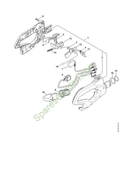 Original spare parts Handle molding Cordless hedge trimmers (HSA) HSA 94 R Stihl Included nr. 2