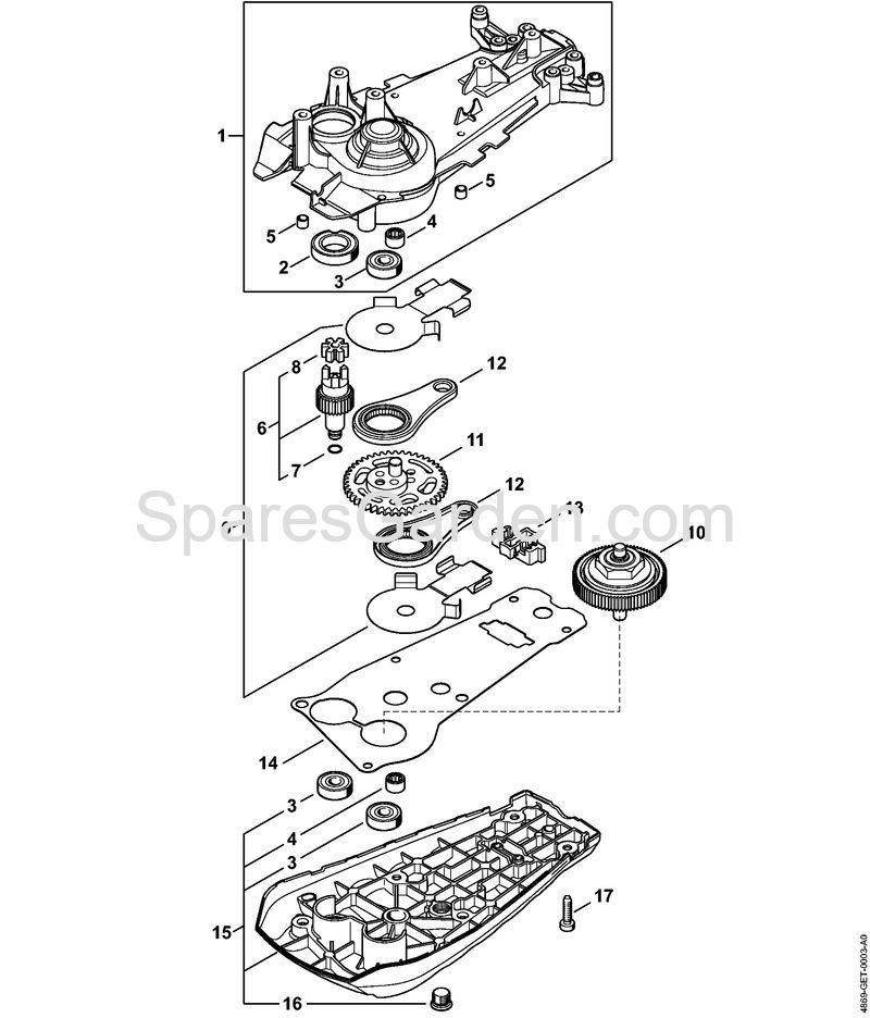 Original spare parts Gearbox cover Cordless hedge trimmers (HSA) HSA 94 T Stihl Included nr. 3, 4, 16