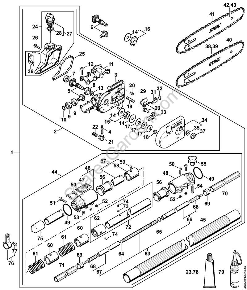 Original spare parts Kit telescopic shaft / gear Pole pruners (HT) HT 101 Stihl Included nr. from 2 a 5, 7 a 15, 17 a 22, 24 a 37, 44 a 75