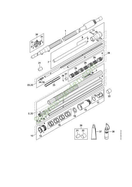 Original spare parts Drive tube assembly Pole pruners (HT) HT 105 Stihl Included nr. from 3 a 5, 35, 36