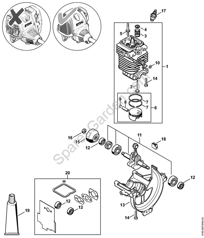 Original spare parts Cylinder with piston diam. 43 mm Pole pruners (HT) HT 130 Stihl Included from nr. 2 a 10 e 14