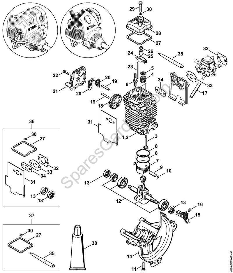 Original spare parts Engine diam. 43 mm Pole pruners (HT) HT 130 Stihl Included from nr. 2 to 34