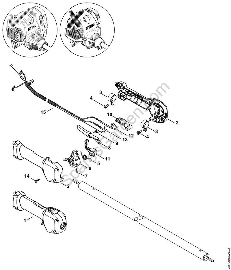 Original spare parts Control handle Pole pruners (HT) HT 130 Stihl Included from nr. 2 to 14