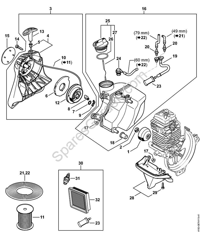 Rewind starter, Fuel tank Pole pruners (HT) HT 135 Stihl