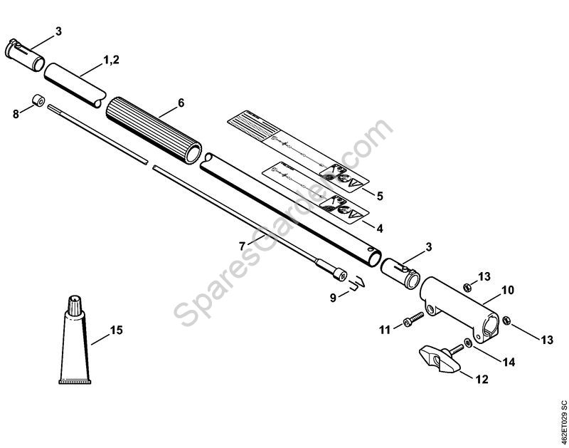 Original spare parts Drive tube assembly 1 m KombiEngines (KM) KM 130 R Stihl Included nr. 3, 4, 6 a 13