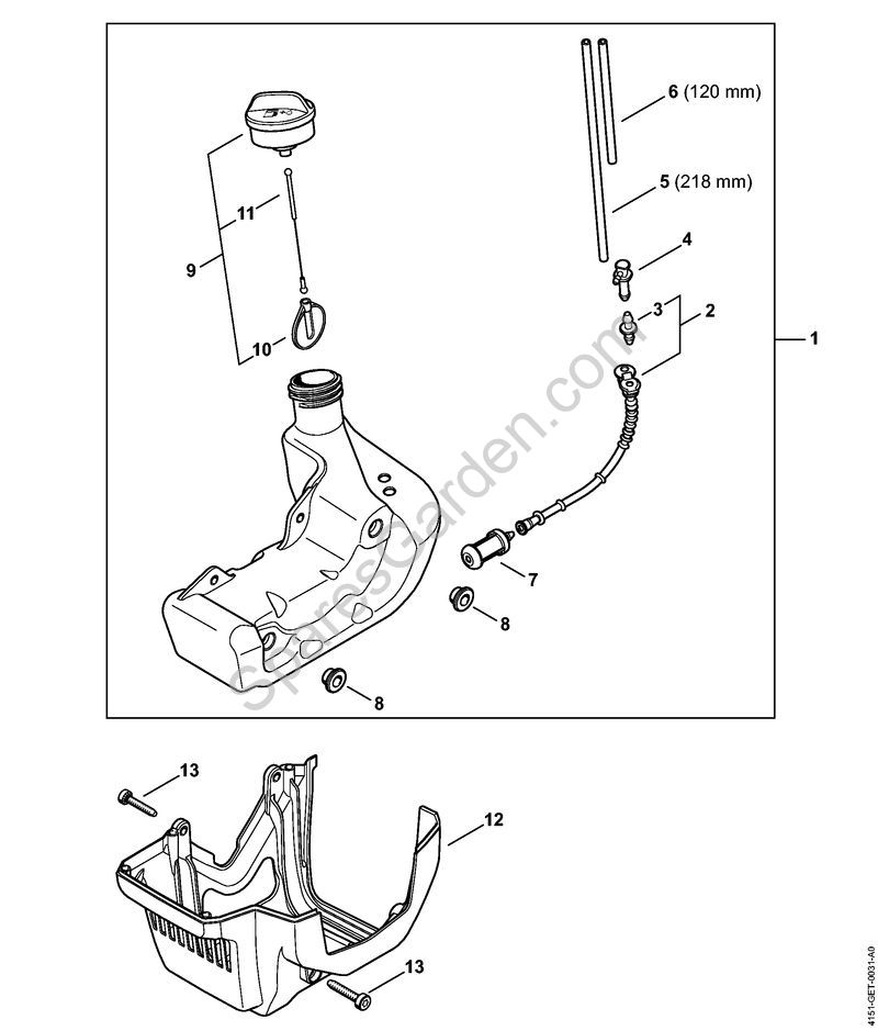 Original spare parts Fuel tank KombiEngines (KM) KM 235.0 Stihl Included from nr. 2 to 11