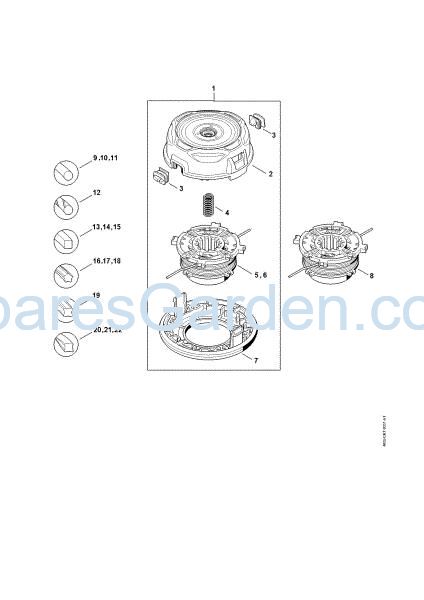When ordering original spare parts for your product FS Cutting attachments Mowing head AutoCut 56-2 of Stihl, to allow our staff to send you the correct spare parts,enter the year of the machine and, if available, its serial number in the Miscellaneous Notes field on the final page of the cart.