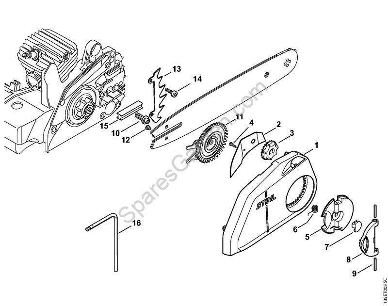 Original spare parts Quick tensioner parts Gasoline chain saws (MS) MS 250 C-B Stihl Included from nr. 1 to 15