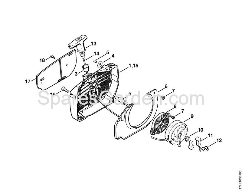 Original spare parts Fan housing with rewind starter Gasoline chain saws (MS) MS 660-W Stihl Included from nr. 1 to 14