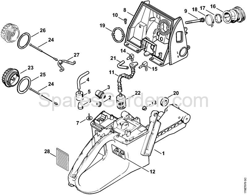 When ordering original spare parts for your product Gasoline chain saws (MS) MS 660-W of Stihl, to allow our staff to send you the correct spare parts,enter the year of the machine and, if available, its serial number in the Miscellaneous Notes field on the final page of the cart.