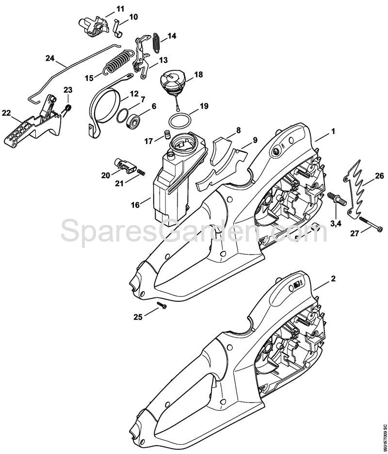 Original spare parts Handle housing Electric chain saws (MSE) MSE 190 C-BQ Stihl Included nr. 3 and to 5 to 7