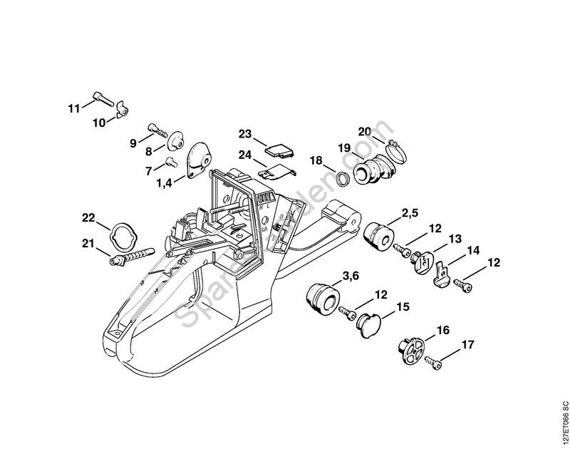 When ordering original spare parts for your product Gasoline chain saws (MS) 024 SW of Stihl, to allow our staff to send you the correct spare parts,enter the year of the machine and, if available, its serial number in the Miscellaneous Notes field on the final page of the cart.