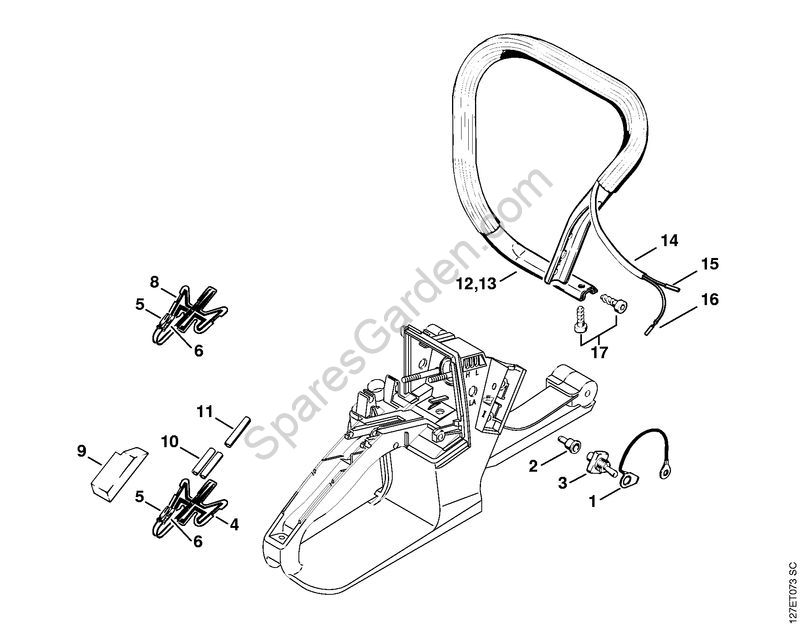 Original spare parts Handlebar Gasoline chain saws (MS) 024 SW Stihl Included from nr. 14 to 16