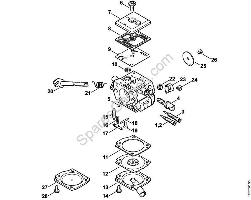 Original spare parts Carburetor C3-S148A Gasoline chain saws (MS) 038 W Stihl Included nr. 1 and to 3 to 26