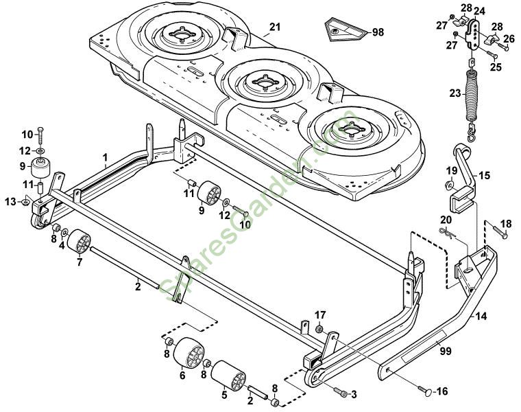 When ordering original spare parts for your product MF - Mowing deck AME 848 of Viking, to allow our staff to send you the correct spare parts,enter the year of the machine and, if available, its serial number in the Miscellaneous Notes field on the final page of the cart.