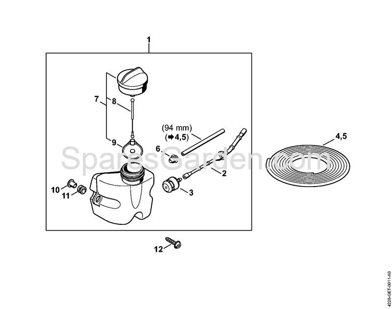 Original spare parts Fuel tank Hedge trimmers (HS) HS 45 2-MIX Stihl Included nr. 2, 3, 6 a 11