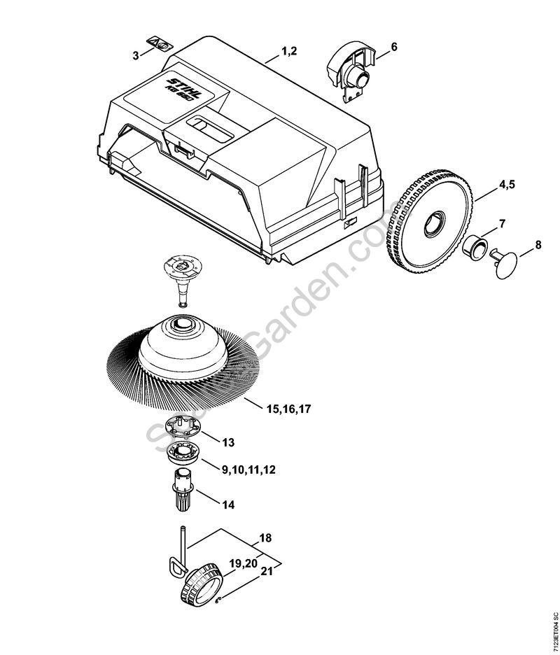 When ordering original spare parts for your product Sweepers (KG) KG 550 of Stihl, to allow our staff to send you the correct spare parts,enter the year of the machine and, if available, its serial number in the Miscellaneous Notes field on the final page of the cart.