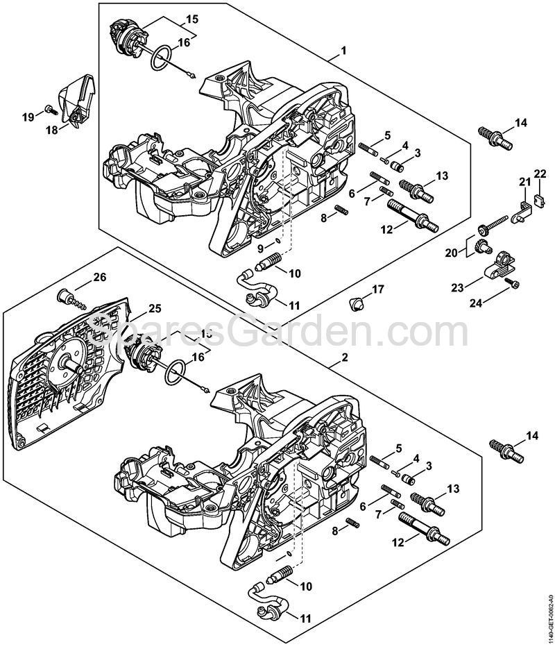 Original spare parts Engine housing Gasoline chain saws (MS) MS 391 Stihl Included nr. from 3 a 13, 15, 16
